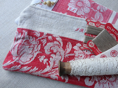 For nearly a week no news at Steekjes & Kruisjes, that does not happen often. But we have been very busy! Our orders come gradually in and it is very exiting to see what is in the packages. This week we started decorating the shop which is our favorite job. These sewing cases are made of vintage fabric and linen and will be sold in the shop. Fortunately there is a lot a vintage fabric in our favourite colour red!